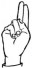 На ћирилици написано ПЕРО МИКОВИЋ састоји се из 11 слова [?]. Исписано ћириличном једноручном азбуком за глувонеме: